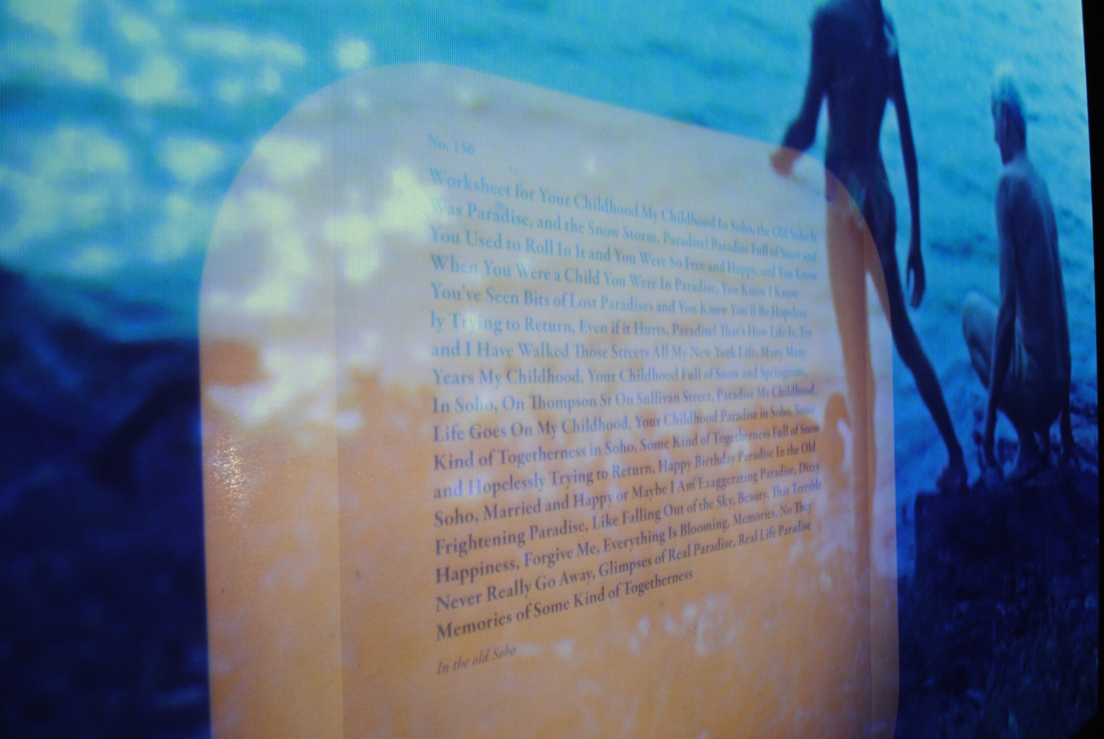 As part of the ongoing project Workbook for the Year of the Metal Rat, this piece was created in response to Jonas Mekas’s As I Was Moving Ahead Occasionally I Saw Brief Glimpses of Beauty. The worksheet, printed on transparency film and projected via a classroom overhead projector, draws from Chambers’s own childhood in SoHo in the 1990s, and imagines the worksheet and video as question and answer.