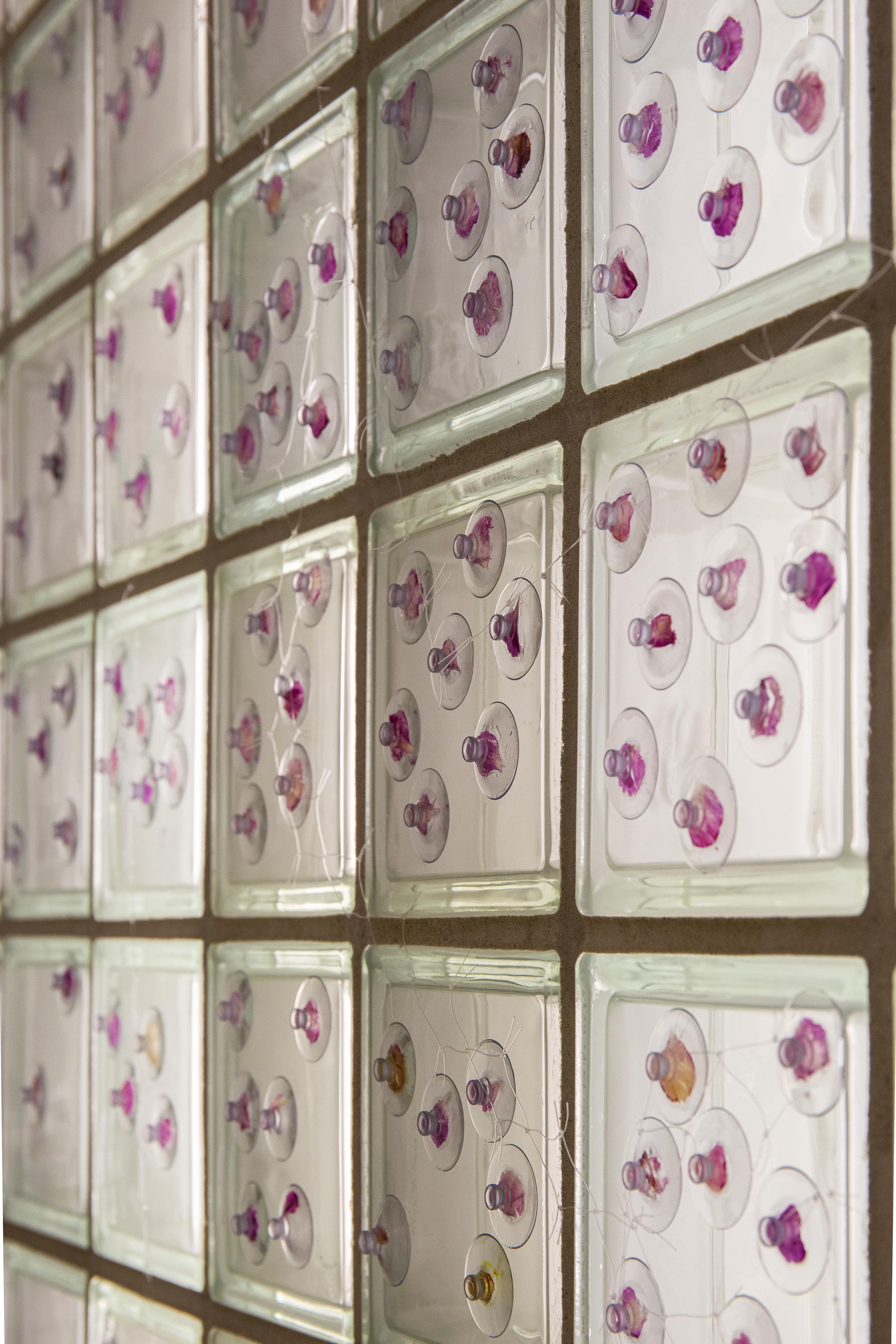 Made out of more than 1000 flower petals attached to silicon suction cups, this installation explores themes of loss, temporality, and the preservation of nature. Carefully crafted by hand, each piece of flower is glued to a suction cup which is then preserved in a vacuum. This is a reflection on the fragility of the natural world and the impact of human activity on the environment, as well as on global trade and mass production.